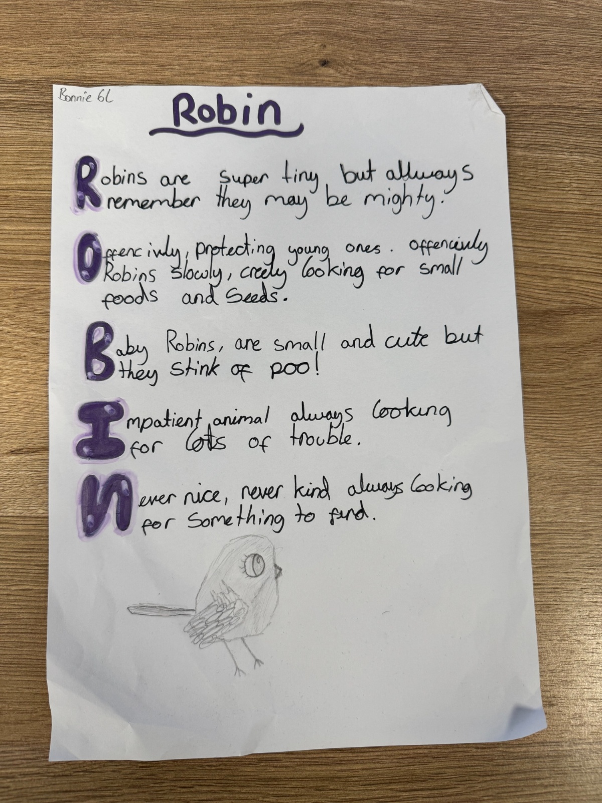 The Lost Words is a beautiful book full of acrostic spell-poems by award-winning writer Robert Macfarlane and illustrations by Jackie Morris. Year 6 studied the book by looking at some of the amazing poems which inspired them to write their own in the same style.
