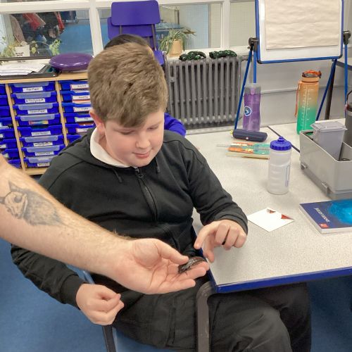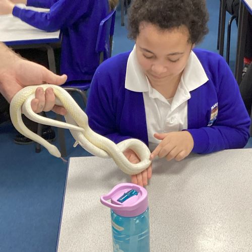 Year 6 started the Spring term with a fantastic impact day to start our topic, ‘Hola, South America!’. During the morning each class experienced three different activities. We certainly began the term with a bang as we began learning about Samba music and had a go at learning different rhythms. The drums were definitely used with great enthusiasm. We learned about the Yawanawà Tribe and this inspired some fantastic art work. Each class also had an enlightening lesson led by Zoolab, who taught us about some animals found in rainforests. We got to see and touch an African snail, a cockroach and a cornsnake! We also learnt about (and saw) a White Tree Frog and a scorpion.
