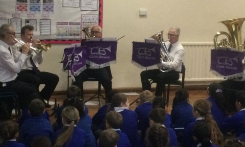 On Wednesday 21st January, we were very lucky to have Cove Brass Brand come to our whole school assembly to share their instruments and perform to us.